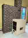 (但し、使用によっては燃焼室上部はMax100度位、本体レンガはMax40度位になります。焚口金物は内側に断熱レンガ装着で高温になりませんが、コンロ付の鉄板と耐火ガラスは高温になりますので注意が必要です。煙突レンガは熱くなりません。)